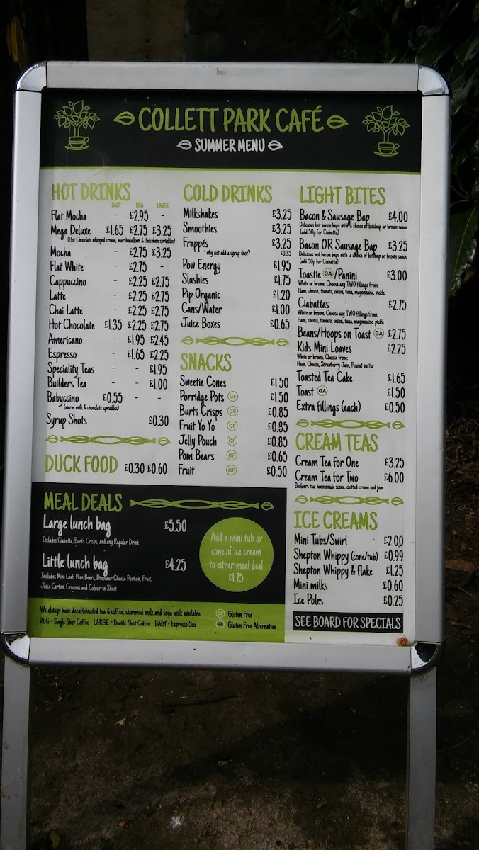 Overall, Collett Park Cafe’s menu caters to a wide range of tastes, from hearty meals and refreshing drinks to indulgent snacks and desserts, making it a perfect spot to relax and enjoy a bite in the beautiful setting of Collett Park.